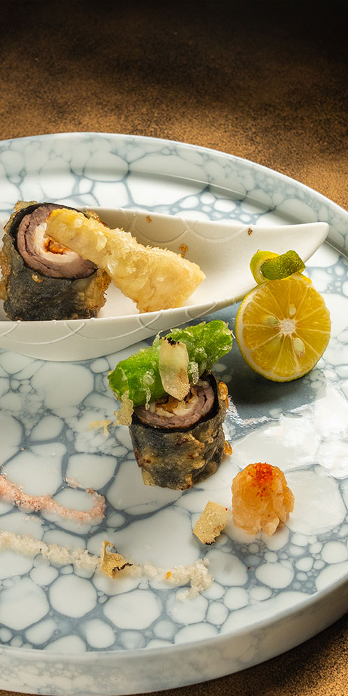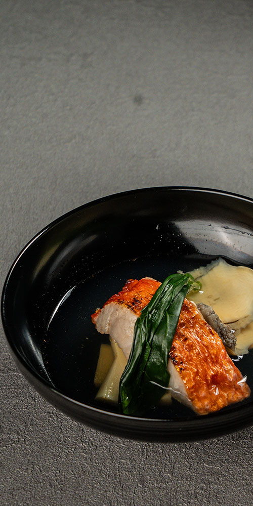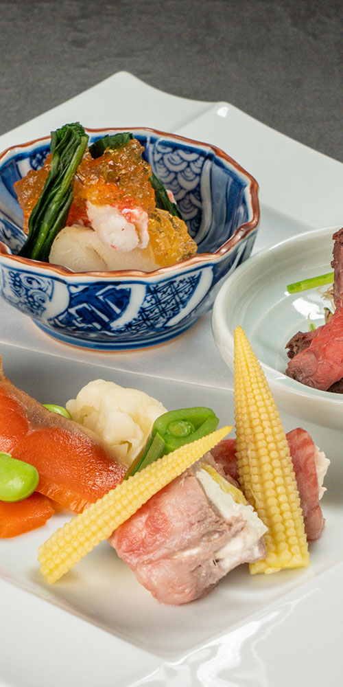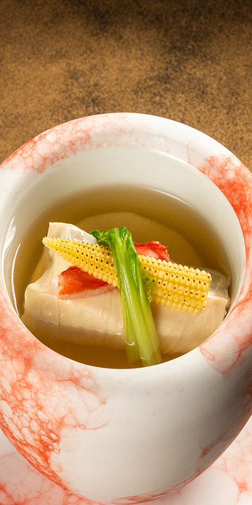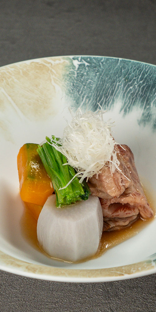 卓越した技と美意識を礎に、旬の食材を巧みに活かし、一皿ごとに四季の物語を描き出す。